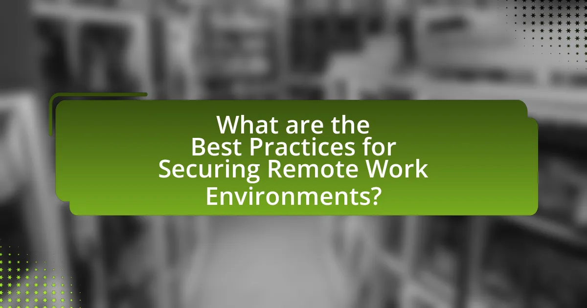 The best practices for securing remote work environments include implementing strong password policies, utilizing multi-factor authentication, and ensuring regular software updates. Strong password policies require employees to create complex passwords and change them regularly, reducing the risk of unauthorized access. Multi-factor authentication adds an additional layer of security by requiring a second form of verification, such as a text message or authentication app, which significantly decreases the likelihood of account breaches. Regular software updates are crucial as they patch vulnerabilities that could be exploited by cybercriminals, with studies showing that 60% of breaches involve unpatched software. Additionally, providing cybersecurity training for employees helps them recognize phishing attempts and other threats, further enhancing the security of remote work environments.